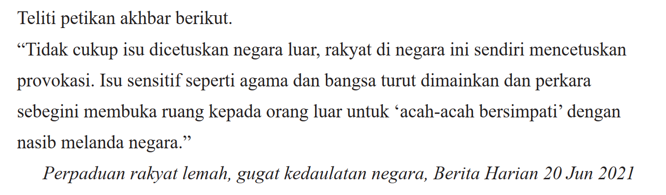 3. Berikut adalah sarangkap pantun berkaitan kedaulatan negara.